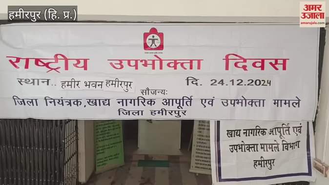 राष्ट्रीय उपभोक्ता दिवस के उपलक्ष्य पर दि हमीरपुर उपभोक्ता संरक्षण संगठन और खाद्य नागरिक आपूर्ति एवं उपभोक्ता मामले हमीरपुर की ओर से मंगलवार को हमीर भवन में कार्यक्रम का आयोजन किया गया। कार्यक्रम में कांग्रेस नेता पुष्पिंदर वर्मा बतौर मुख्यातिथि शामिल हुए। कार्यक्रम में उपभोक्ताओं के अधिकारों सहित अन्य विषयों पर चर्चा की जा रही है।