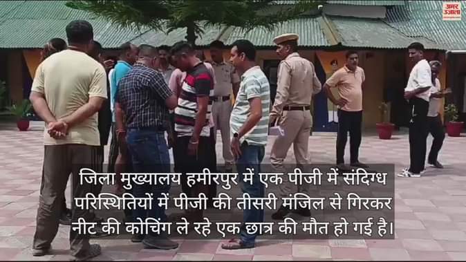 जिला मुख्यालय हमीरपुर में एक पीजी में संदिग्ध परिस्थितियों में पीजी की तीसरी मंजिल से गिरकर नीट की कोचिंग ले रहे एक छात्र की मौत हो गई है। छात्र बिलासपुर के हटवाड़ क्षेत्र का निवासी है। मृतक छात्र के परिजन भी सदर थाना हमीरपुर में पहुंच गए हैं। देर रात रविवार को यह घटना सामने आई है। अभी तक यह स्पष्ट नहीं हो सका है कि छात्र ने कूद कर जान दी है अथवा गिरने से ये हादसा हुआ। हालांकि यह भी कहा जा रहा है कि छात्र पढ़ाई के चलते डिप्रेशन में था। हालांकि यह स्पष्ट नहीं हो सका है कि यह आत्महत्या है अथवा हादसा। एसपी हमीरपुर भगत सिंह ठाकुर ने कहा कि मामले की छानबीन की जा रही है।