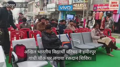 VIDEO : अखिल भारतीय विद्यार्थी परिषद ने हमीरपुर गांधी चौक पर लगाया रक्तदान शिविर