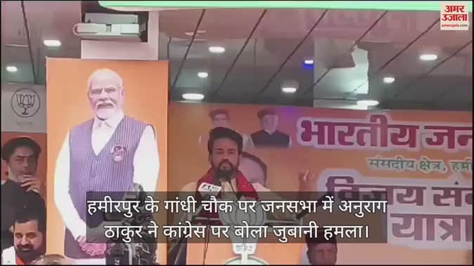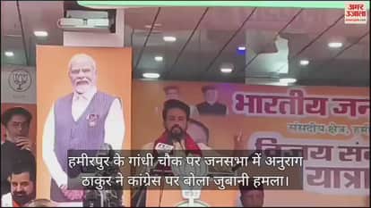 VIDEO : हमीरपुर के गांधी चौक पर जनसभा में अनुराग ठाकुर ने कांग्रेस पर बोला जुबानी हमला