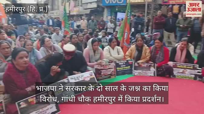 VIDEO : भाजपा ने सरकार के दो साल के जश्न का किया विरोध, गांधी चाैक हमीरपुर में किया प्रदर्शन