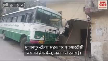 VIDEO : सुजानपुर-टीहरा सड़क पर एचआरटीसी बस की ब्रेक फेल, मकान से टकराई