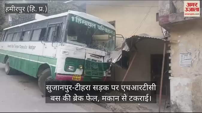 हिमाचल प्रदेश के हमीरपुर जिले में धैल से सुजानपुर आ रही एचआरटीसी बस की सुजानपुर-टीहरा सड़क पर ब्रेक फेल हो गई है। ब्रेक फेल होने के कारण यह मकान से टकरा गई। बस में 30 सवारियां थीं। बस सुबह 7:10 से धैल से चलती है और सुजानपुर 9:00 पहुंचती है। सुजानपुर से लगभग 500 मीटर दूरी पर एक मोड पर ब्रेक फेल हो जाने के कारण चालक बस से नियंत्रण खो बैठा। इसके बाद बस को चालक ने मकान के साथ टक्कर मार दी। इससे बस रुक गई। सभी सवारिया सुरक्षित हैं। किसी को भी चोट नहीं लगी है।