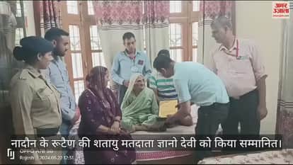 VIDEO : नादौन के रूटैण की शतायु मतदाता ज्ञानो देवी को किया सम्मानित