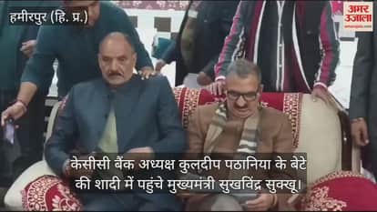 मुख्यमंत्री सुखविंद्र सिंह सुक्खू ने शुक्रवार को हमीरपुर में केसीसी बैंक के अध्यक्ष एंव पूर्व विधायक कुलदीप पठानिया के बेटे की शादी में शिरकत की। इस दाैरान उन्होंने लोगों की समस्याएं भी सुनीं।