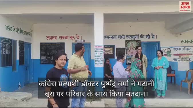 VIDEO : कांग्रेस प्रत्याशी डॉक्टर पुष्पेंद्र वर्मा ने मटानी बूथ पर परिवार के साथ किया मतदान