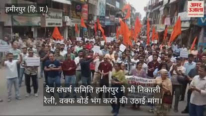 देव संघर्ष समिति हमीरपुर नाम शनिवार को वाटर चौक से लेकर गांधी चौक तक रैली का आयोजन किया। इस दाैरान सदस्यों ने वक्फ बोर्ड को भंग करने की मांग की। देव संघर्ष समिति के जिला संयोजक सुजीत कुमार ने कहा कि वक्फ बोर्ड को भंग किया जाना चाहिए तथा अवैध रूप से हो रहे निर्माण को भी बंद किया जाना चाहिए। उन्होंने उपायुक्त के माध्यम से मुख्यमंत्री को ज्ञापन प्रेषित किया।