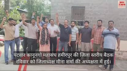 पटवार कानूनगो महासंघ हमीरपुर की जिला स्तरीय बैठक रविवार को जिलाध्यक्ष मीना शर्मा की अध्यक्षता में हुई। जिसमें जिले की छह तहसीलों से 60 सदस्यों ने भाग लिया। इस बैठक में प्रदेश सरकार द्वारा पटवारी कानूनगो के जिला स्तरीय कैडर को राज्य स्तरीय कैडर करने का पुरजोर विरोध कि या। बैठक में पटवारी कानूनगो ने कैडर को राज्यस्तरीय करने से पेश आने वाली समस्याओं बारे विचार विमर्श किया गया। साथ ही राज्य स्तरीय कार्यकारिणी द्वारा इस फैसले के विरूद्ध सभी प्रकार के ऑनलाइन कार्य जिलाधीश को ज्ञापन देने के बाद बंद किए जाने के निर्णय के बारे में सहमति जताई गई। इस अवसर पर राज्य कार्यकारिणी के वरिष्ठ उप प्रधान अजय कुमार ने कहा कि इस पर राज्य कार्यकारिणी की राज्य स्तरीय बैठक कुल्लू में होगी। आगामी निर्णय वहीं पर लिया जाएगा।