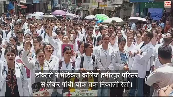 VIDEO : डॉक्टरों ने मेडिकल कॉलेज हमीरपुर परिसर से लेकर गांधी चौक तक निकाली रैली