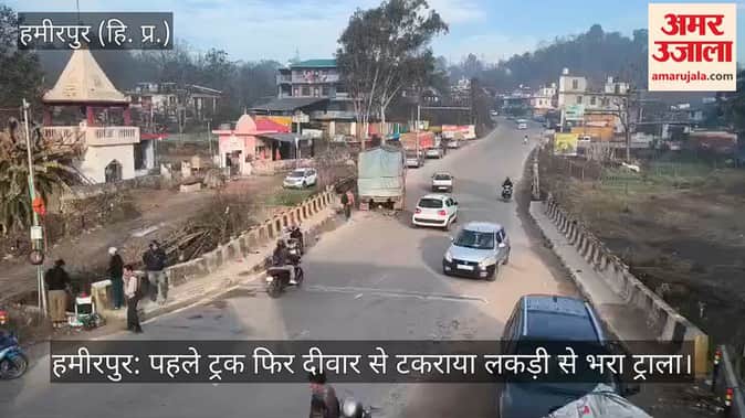 हमीरपुर: पहले ट्रक फिर दीवार से टकराया लकड़ी से भरा ट्राला