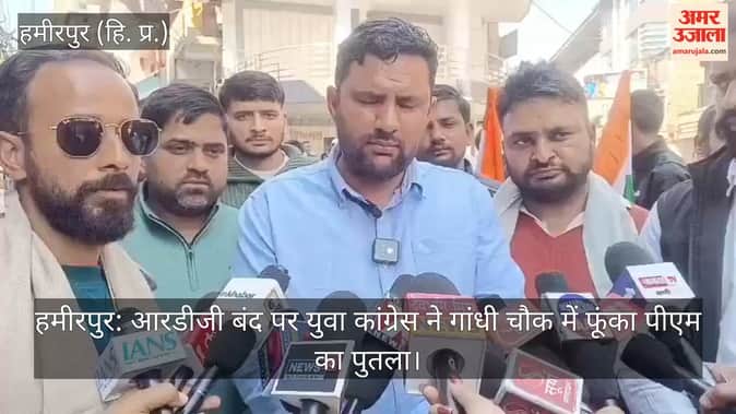 हमीरपुर: आरडीजी बंद पर युवा कांग्रेस ने गांधी चौक में फूंका पीएम का पुतला