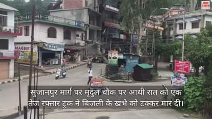 VIDEO : तेज रफ्तार ट्रक ने बिजली के खंभे को मारी टक्कर, हमीरपुर मिनी सचिवालय के बाहर हुआ हादसा