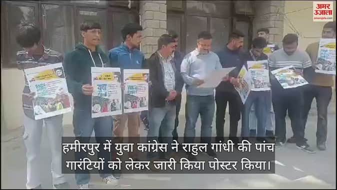 VIDEO : हमीरपुर में युवा कांग्रेस ने राहुल गांधी की पांच गारंटियों को लेकर जारी किया पोस्टर किया