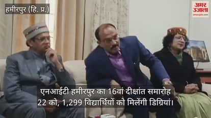 एनआईटी हमीरपुर में 16वां दीक्षांत समारोह 22 दिसंबर को आयोजित किया जाएगा। इसके लिए शनिवार को प्रेस वार्ता का आयोजन किया गया। जिसमें एनआईटी के निदेशक एच.एम. सूर्यवंशी, रजिस्ट्रार डॉ. अर्चना संतोष ननोटी, डीन (अकादमिक्स) डॉ. सिद्धार्थ शर्मा, प्रशिक्षण एवं प्लेसमेंट अधिकारी डॉ. सोमेश शर्मा, मीडिया सेल समन्वयक डॉ. राकेश शर्मा सहित अन्य वरिष्ठ अधिकारी उपस्थित रहे। समारोह सत्र 2024-25 के दौरान विधिवत योग्यता प्राप्त डिग्री हासिल करने वालों विद्यार्थियों के लिए सुबह 10 बजे से संस्थान के सभागारमें आयोजित किया जाएगा। समारोह में सांसद अनुराग ठाकुर बतौर मुख्यातिथि जबकि डिफेंस जियो-इन्फॉर्मेटिक्स रिसर्च एस्टैब्लिशमेंट,डीआरडीओ,चंडीगढ़ के निदेशक डॉ. प्रमोद कुमार सत्यावली विशेष अतिथि के रूप में मौजूद होंगे। दीक्षांत समारोह के दिन ड्रेस कोड में पुरुष छात्रों के लिए सफेद कुर्ता-पायजामा जैकेट व छात्राओं के लिए सफेद साड़ी या सलवार-कुर्ता जैकेट निर्धारित किया गया है। समारोह में कुल मेधावी विद्यार्थियों को उनकी उत्कृष्ट शैक्षणिक उपलब्धियों के लिए 1,299 डिग्रियां प्रदान की जाएंगी, जिनमें 900 स्नातक, 338 स्नातकोत्तर तथा 61 पीएचडी डिग्रियां शामिल हैं। इसके अतिरिक्त संस्थान की ओर से एक निदेशक, 33 स्वर्ण,13 रजत और 13 कांस्य पदक शामिल हैं। इस वर्ष सर्वश्रेष्ठ ऑलराउंड प्रदर्शन के लिए निदेशक पदक कंप्यूटर एंड इंजीनियरिंग विभाग से गुरकीरत कौर को प्रदान किया जाएगा। इस दौरान उनके माता-पिता को भी सम्मानित किया जाएगा।