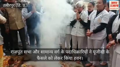 Hamirpur: राजपूत सभा और सामान्य वर्ग के पदाधिकारियों ने यूजीसी के फैसले को लेकर किया हवन
