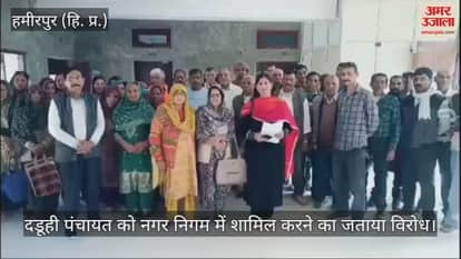 ग्राम पंचायत दडूही के बाशिंदों ने दडूही पंचायत को हमीरपुर नगर निगम में शामिल करने पर विरोध जताया है। ग्राम पंचायत प्रधान उषा बिरला की अगुवाई में ग्रामीणों का एक प्रतिनिधिमंडल सोमवार को उपायुक्त हमीरपुर से मिला है। उन्होंने उपायुक्त हमीरपुर अमरजीत सिंह से मांग की है कि ग्राम पंचायत दडूही को नगर निगम में शामिल ना किया जाए। उन्होंने कहा कि पंचायत में गरीब तबके के लोग रहते हैं और भी नगर निगम का टैक्स वहां नहीं कर सकते हैं। इसलिए उन्हें पंचायत में ही रहने दिया जाए जिसके चलते उन्होंने प्रदेश सरकार को उपायुक्त हमीरपुर के माध्यम से ज्ञापन सौंपा है। वहीं स्थानीय ग्राम पंचायत प्रधान उषा बिरला ने बताया कि प्रदेश सरकार की ओर से हमीरपुर में नगर निगम बनाया जा रहा है, जिसमें दारू ही पंचायत को भी शामिल किया जा रहा है। उन्होंने नगर निगम में शामिल होने पर इसका विरोध जताया है। उन्होंने बताया कि नगर निगम में शामिल होने से नुकसान ज्यादा है और लाभ कम है। उन्होंने कहा कि ग्राम पंचायत में गरीब लोग रहते हैं। उन्होंने उपायुक्त हमीरपुर के माध्यम से सरकार को ज्ञापन सौंपा है कि वह ग्राम पंचायत दडूही को नगर निगम में शामिल न करें। वहीं स्थानीय व्यक्ति ने बताया कि वह गरीब तबके से संबंध रखते हैं और नगर निगम में शामिल नहीं होना चाहते। क्योंकि उनके पास नगर निगम के टैक्स देने के लिए धन नहीं है। उन्होंने प्रदेश की सरकार से मांग की है की ग्राम पंचायत दडूही को नगर निगम में शामिल न किया जाए।