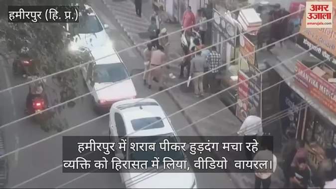 VIDEO : हमीरपुर में शराब पीकर हुड़दंग मचा रहे व्यक्ति को हिरासत में लिया, वीडियो वायरल