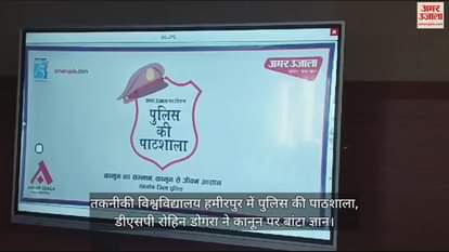 हिमाचल प्रदेश तकनीकी विश्वविद्यालय हमीरपुर में मंगलवार को अमर उजाला फाउंडेशन की तरफ से पुलिस की पाठशाला कार्यक्रम का आयोजन किया गया। इस कार्यक्रम में डीएसपी मुख्यालय रोहिन डोगरा विशेष रूप से मौजूद रहे। उन्होंने कार्यक्रम में मौजूद विद्यार्थियों को कानून की विस्तृत जानकारी दी। इस दौरान विद्यार्थियों ने उनसे कई सवाल भी किए। डीएसपी ने नशे की रोकथाम के लिए सरकार के प्रयासों पर विस्तृत जानकारी दी।