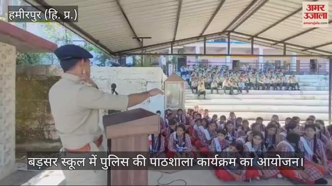 राजकीय वरिष्ठ माध्यमिक पाठशाला बड़सर में शुक्रवार को अमर उजाला फाउंडेशन की ओर से पुलिस की पाठशाला कार्यक्रम का आयोजन किया गया। कार्यक्रम की अध्यक्षता स्कूल प्रधानाचार्य सरला ठाकुर ने की। जबकि एसडीपीओ बड़सर सचिन हीरेमठ बतौर मुख्य अतिथि उपस्थित हुए। मुख्य अतिथि ने विद्यार्थियों को नशे के बढ़ते प्रचलन और इसके दुष्प्रभाव के बारे में विस्तारपूर्वक जानकारी दी। उन्होंने कहा कि वर्तमान में नशे के साथ साइबर अपराध भी बहुत बड़ी चुनौती है जिसके लिए हमारा जागरूक होना अति आवश्यक है। उन्होंने छात्रों को यातायात नियमों, साइबर अपराध से बचाव और खेलकूद गतिविधियों में अधिक से अधिक भाग लेने के लिए प्रेरित किया। इस मौके पर स्कूल स्टाफ सदस्य उपस्थित रहे। कार्यक्रम में विद्यार्थियों ने एसडीपीओ से विभिन्न विभिन्न प्रश्न किए, जिस पर एसडीपीओ ने उन्हें विस्तार पूर्वक जानकारी दी।