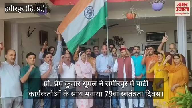 Hamirpur: प्रो. प्रेम कुमार धूमल ने समीरपुर में पार्टी कार्यकर्ताओं के साथ मनाया 79वां स्वतंत्रता दिवस