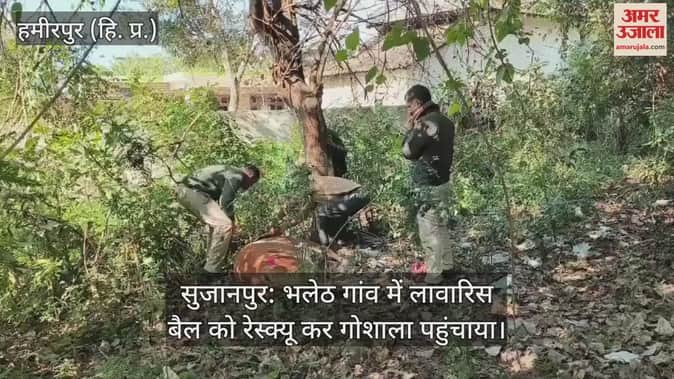 सुजानपुर: भलेठ गांव में लावारिस बैल को रेस्क्यू कर गोशाला पहुंचाया