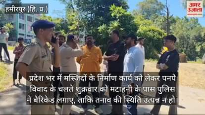 प्रदेश भर में मस्जिदों के निर्माण कार्य को लेकर पनपे विवाद के शुक्रवार को मटाहनी के पास पुलिस ने बैरिकेड लगाए, ताकि तनाव की स्थिति उत्पन्न न हो, क्योंकि सोशल मीडिया के माध्यम से सूचना मिली थी कि हिंदू संगठन मस्जिद के पास विरोध प्रदर्शन करेंगे। वहीं पुलिस को भी मुस्लिम समुदाय के लोगों ने सुरक्षा के कहा था। लेकिन पुलिस ने मौका पर पहुंची करणी सेना को आगे ही नहीं जाने दिया जिसपर करणी सेना के सदस्यों ने पुलिस पर खूब भड़ास निकाली। हर शुक्रवार को मस्जिदों में जुमे की नमाज अदा की जाती है। जिसमें सभी मुस्लिम समुदाय के लोग इकट्ठा होकर नमाज अदा करते हैं। ऐसे में सूचना मिली थी कि यहां पर हिंदू संगठन विरोध प्रदर्शन करेंगे, लेकिन तनाव की स्थिति न हो इसके लिए पुलिस ने थाना प्रभारी ललित महंत की अगुवाई में राज्य चयन आयोग के पास ही बैरिगेट लगा दिए। उस क्षेत्र में जाने वाले हर वाहन की चेकिंग की जा रही थी और जाने की वजह पूछी जा रही थी। हर वाहन चालक व पैदल जाने वाले के पहचान पत्र चेक किए जा रहे थे। इस दौरान करणी सेना के सदस्य गाड़ियों में वहां पर पहुंचे। लेकिन पुलिस ने उन्हें वहां पर ही रोक लिया। पुलिस ने उनका आगे जाने का कारण पूछा तो करणी सेना ने कहा कि बाबा बालक नाथ मंदिर के पास उनकी बैठक है लेकिन पुलिस ने उन्हें आगे नहीं जाने दिया और कहा कि यहां पर ही अपने सदस्यों को बुला लीजिए, लेकिन करणी सेना के सदस्य आगे जाने की जिद करते रहे। लेकिन पुलिस ने उन्हें आगे जाने नहीं दिया। इस दौरान कोई लॉ एंड ऑडर का उल्लघंन न करे इसके लिए तहसीलदार हमीरपुर सुभाष कुमार भी मौका पर तैनात रहे। वहीं, थाना प्रभारी ललित महंत ने कहा कि सुरक्षा की दृष्टि से यह बैरिगेट लगाए थे। गत दिवस मुस्लिम समुदाय के लोगों ने यहां पर सुरक्षा की मांग की थी क्योंकि सोशल मीडिया पर हिंदू संगठनों ने विरोध प्रदर्शन करने की सूचना दी थी। यहां पर कोई हंगामा न हो इसके लिए हर व्यक्ति की जांच की गई और पहचान पत्र देखे गए। वहीं जिन सदस्यों को रोका गया वह संदेह में थे इसलिए आगे जाने दिया गया। वहीं करणी सेना की ओर से आए प्रदेशाध्यक्ष दीपक डडवाल, प्रदेश महामंत्री अजीत, प्रदेश सहमंत्री विक्की राजपूत ने कहा कि मटाहणी में बाबा बालक नाथ मंदिर के पास उनकी बैठक थी लेकिन पुलिस ेने राज्य चयन आयोग के पास ही रोक लिया। पुलिस महज एक विशेष समुदाय के लोगों को सुरक्षा प्रदान कर रहा है जबकि इस क्षेत्र में रह रहे हिंदू भी भयभीत हैं। उन्होंने कहा कि पुलिस को उन लोगों को रोकना चाहिए जो बाहरी राज्यों से यहां पर आ रहे हंै और माहौल खराब कर रहे हैं। वहीं 16 सितंबर को भी राज्य चयन आयोग के पास मुख्य सड़क पर पुलिस ने मुस्लिम समुदाय के लोगों मटाहणी के समीप में लखदाता पीर कमेटी की ओर से करवाए 