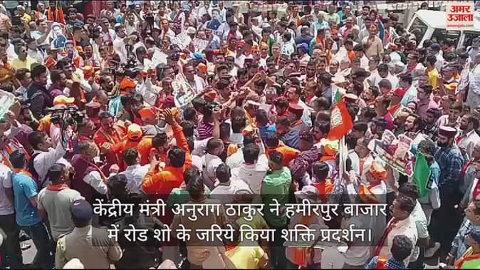 VIDEO : केंद्रीय मंत्री अनुराग ठाकुर ने हमीरपुर बाजार में रोड शो के जरिये किया शक्ति प्रदर्शन