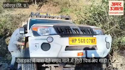 Video: दोसड़का में पास देते समय नाले में गिरी पिकअप गाड़ी