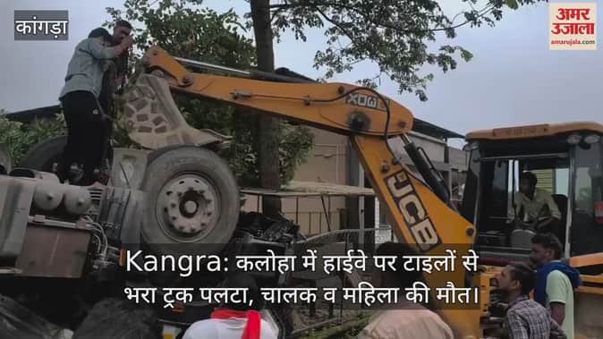 Kangra: कलोहा में हाईवे पर टाइलों से भरा ट्रक पलटा, चालक व महिला की माैत