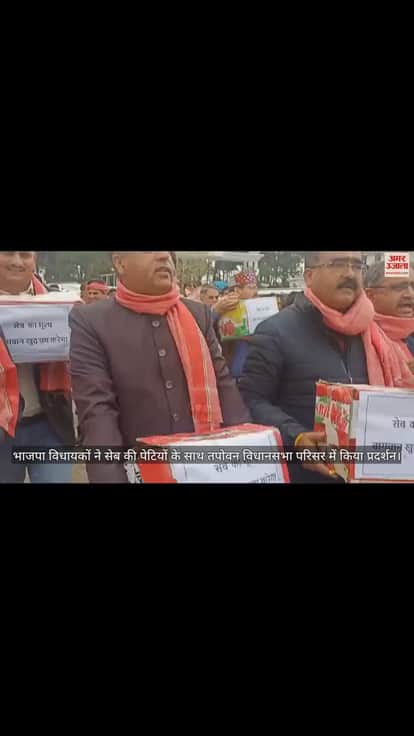 VIDEO : भाजपा विधायकों ने सेब की पेटियों के साथ तपोवन विधानसभा परिसर में किया प्रदर्शन
