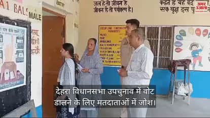 VIDEO : देहरा विधानसभा उपचुनाव में वोट डालने के लिए मतदाताओं में जोश