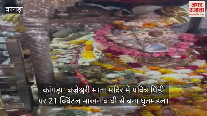 कांगड़ा: बज्रेश्वरी माता मंदिर में पवित्र पिंडी पर 21 क्विंटल माखन व घी से बना घृतमंडल