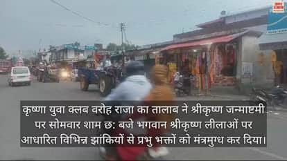 VIDEO : कृष्णा युवा क्लब वरोह राजा का तालाब ने जन्माष्टमी पर निकाली विभिन्न झांकियां