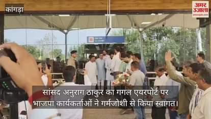Kangra: सांसद अनुराग ठाकुर का गगल एयरपोर्ट पर भाजपा कार्यकर्ताओं ने गर्मजोशी से किया स्वागत