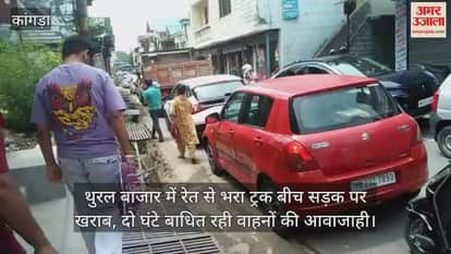 कांगड़ा के थुरल बाजार में एक रेत से भरा ट्रक बीच बाजार में खराब हो गया और दोनों तरफ गाड़ियों की लंबी कतारें लग गईं। दो घंटे तक आवाजाही बाधित रही। कड़ी धूप में लोगों को परेशानी झेलनी पड़ी। पुलिस और स्थानीय दुकानदारों को जाम खुलवाने में भारी मुश्किल उठानी पड़ी।