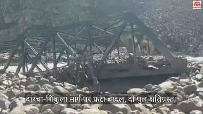 VIDEO : दारचा-शिंकुला मार्ग पर फटा बादल, दो पुल क्षतिग्रस्त
