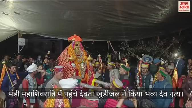 100 साल बाद मंडी महाशिवरात्रि में भाग लेने पहुंचे देवता खुडीजल का जगह-जगह भव्य स्वागत हुआ। इस दौरान देवता खुडीजल ने देव नृत्य कर सभी को मंत्रमुग्ध किया। मंडी शिवरात्रि को पहुंचे देवता खुडीजल के दर्शन के लिए जगह-जगह लोगों का तांता लगा और सुख-शांति व समृद्धि का आशीर्वाद लिया। देवता ने देव नृत्य के दौरान देवलुओं ने पारंपरिक शिवरात्रि गाने गाकर भोलेनाथ को प्रसन्न करने का प्रयास किया।
