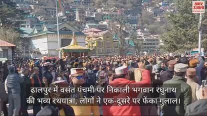 VIDEO : ढालपुर में वसंत पंचमी पर निकाली भगवान रघुनाथ की भव्य रथयात्रा, लोगों ने एक-दूसरे पर फेंका गुलाल