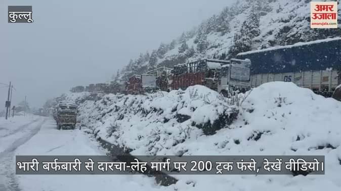 भारी बर्फबारी से दारचा-लेह मार्ग पर 200 ट्रक फंसे, देखें वीडियो