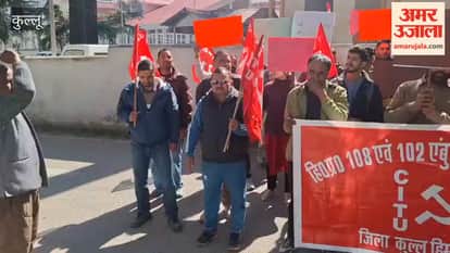 Kullu: डीसी कार्यालय के बाहर गरजे 108 और 102 एंबुलेंस सेवा कर्मी