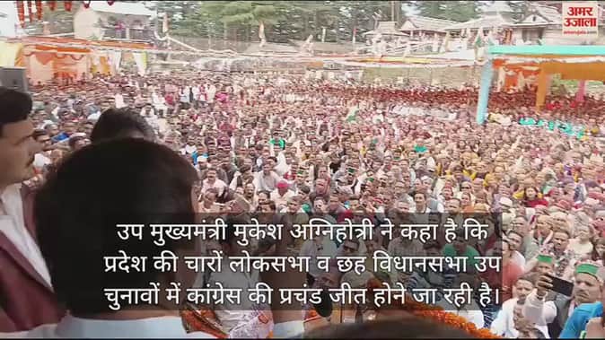उप मुख्यमंत्री मुकेश अग्निहोत्री ने कहा है कि प्रदेश की चारों लोकसभा व छह विधानसभा उप चुनावों में कांग्रेस की प्रचंड जीत होने जा रही है। उन्होंने कहा है कि लोगों को भाजपा के धनबल पर नहीं कांग्रेस के जनबल पर विश्वास है। षड्यंत्रकारियों को इस बार प्रदेश के लोग सबक सिखाएगें। आज रामपुर विधानसभा क्षेत्र के ननखड़ी व कुल्लू जिला के निरमंड में विक्रमादित्य सिंह के पक्ष में चुनावी जनसभाओं को सम्बोधित करते हुए मुकेश अग्निहोत्री ने कहा कि विक्रमादित्य सिंह प्रदेश का भविष्य है और उन्हें अपने भविष्य को सुरक्षित व संवारना होगा। उन्होंने कहा कि विक्रमादित्य सिंह भारी मतों से जीत रहे हैं बस देखना अब यह है कि उनकी जीत कितने रिकार्ड तोड़ मतों से होती है। उन्होंने दावा किया कि कंगना न तो विधानसभा और न ही लोकसभा की चौखट कभी नहीं लांघ सकेंगी। उन्होंने कहा कि स्व. वीरभद्र सिंह ने प्रदेश में अथाह विकास कार्य किए हैं उसमें ननखड़ी भी है। उन्होंने लोगों का आह्वान किया कि रामपुर विधानसभा क्षेत्र से एकतरफा विक्रमादित्य सिंह को ही वोट आने चाहिए। यही उनकी वीरभद्र सिंह के लिये सच्ची श्रद्धांजलि होंगी। मुकेश अग्निहोत्री ने पूर्व मुख्यमंत्री जयराम ठाकुर पर तंज कसते हुए कहा कि कंगना के पीछे भाग भाग कर अब वह थक चुके हैं। कंगना का 4 जून का मुंबई जाने का टिकट बुक हो चुका है। उन्होंने कहा कि कंगना भी अपनी हार को देखकर बौखलाहट में है। उन्होंने कहा कि भाजपा प्रत्याशी कंगना को फिल्मी दुनिया में ही रहकर अपना नाम कमाना चाहिए बाकी मण्डी संसदीय क्षेत्र के लिये विक्रमादित्य सिंह ही बहुत है। मुकेश ने कहा कि जिस प्रकार से भाजपा ने प्रदेश की कांग्रेस सरकार को अस्थिर करने की कोशिश की है इस कृत्य का परिणाम प्रदेश के लोग उसे 2 जून को देने जा रहें है। उन्होंने कहा कि 4 जून के बाद प्रदेश की कांग्रेस सरकार ओर भी मजबूत होकर उभरेगी। उन्होंने कहा कि कांग्रेस सरकार को कोई भी खतरा नहीं है यह सरकार अपना कार्यकाल भी पूरा करेगी और 2027 में होने वाले विधानसभा चुनावों के बाद फिर से अपनी सरकार बनाएगी।