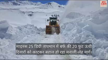 VIDEO : माइनस 25 डिग्री तापमान में बर्फ की 20 फुट ऊंची दिवारों को काटकर बहाल हो रहा मनाली-लेह मार्ग