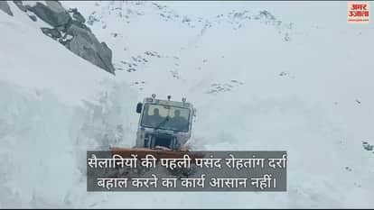 सैलानियों की पहली पसंद रोहतांग दर्रा बहाल करने का कार्य आसान नहीं है। 30 से 35 फीट ऊंचे बर्फ के पहाड़ को चीरते हुए बीआरओ की टीम रोहतांग दर्रा की ओर बढ़ रही है। खासकर हिमखंड गिरने के कारण बर्फ की परत 25 से 35 फीट ऊंची हो गई है। ब्यासनाला से राहनीनाला तक आठ हिमखंडों को चीरकर बीआरओ की टीम आगे निकल गई है। इससे आगे रोहतांग तक इतने ही हिमखंड होने का संभावना है।