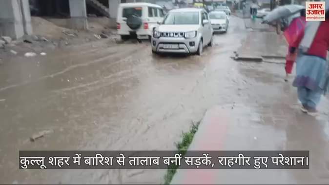VIDEO : कुल्लू शहर में बारिश से तालाब बनीं सड़कें, राहगीर हुए परेशान