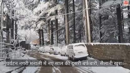 VIDEO : पर्यटन नगरी मनाली में नए साल की दूसरी बर्फबारी, सैलानी खुश