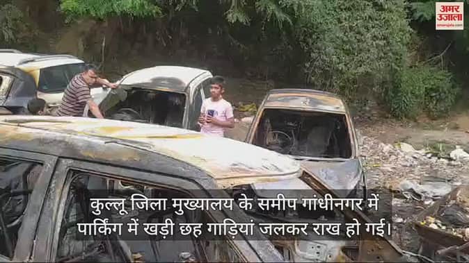 कुल्लू जिला मुख्यालय के समीप गांधीनगर में बीती रात आग की एक घटना सामने आई है। यहां पर पार्किंग में खड़ी छह गाड़ियां जलकर राख हो गई। आग की इस घटना में करीब 20 लाख रुपए का नुकसान हुआ है। सूचना मिलने के बाद दमकल की टीम मौके पर पहुंची और आग पर काबू पाया। अग्निशमन विभाग के सब फायर ऑफिसर प्रेम भारद्वाज ने कहा कि आग लगने के कारणों का अभी तक पता नहीं चल पाया है।