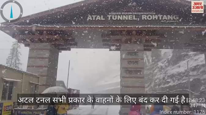 VIDEO : हिमाचल में बर्फबारी, अटल टनल यातायात के लिए बंद