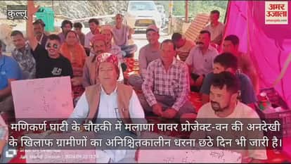 मणिकर्ण घाटी के चौहकी में मलाणा पावर प्रोजेक्ट-वन की अनदेखी के खिलाफ ग्रामीणों का अनिश्चितकालीन धरना छठे दिन भी जारी है। रविवार को भी ग्रामीणों ने परियोजना प्रबंधन के खिलाफ जमकर नारेबाजी की। प्रोजेक्ट का निर्माण करने वाली कंपनी के अधिकारियों ने अभी तक ग्रामीणों की बात नहीं सुनी है, जिसको लेकर लोगों में प्रशासन व परियोजना प्रबंधन के खिलाफ रोष है। महादेव युवक मंडल के प्रधान भगत सिंह ठाकुर ने कहा कि सोमवार को ग्रामीण उपायुक्त कुल्लू से इस मसले को लेकर उपायुक्त से मिलेंगे।