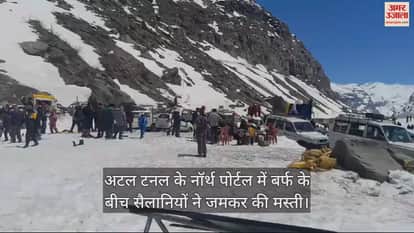 VIDEO : अटल टनल के नॉर्थ पोर्टल में बर्फ के बीच सैलानियों ने जमकर की मस्ती