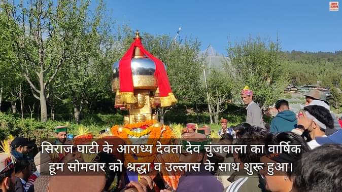 सिराज घाटी के आराध्य देवता देव चुंजवाला का वार्षिक हूम सोमवार को श्रद्धा व उल्लास के साथ शुरू हुआ। सात हार के देवता चुंजवाला का रथ सोमवार को लाव लश्कर के साथ कोठी शालाघट से चुंजवाला मूल स्थल के लिए रवाना हुआ। इस धार्मिक उत्सव में बच्चों के मुंडन संस्कार होंगे और देवलू नाटी नृत्य का लुत्फ उठाएंगे। देव चुंजवाला के गूर टोडर राम ने बताया कि चुंजवाला देवता का हूम श्रद्धा व उल्लास के साथ शुरू हो गया है और हजारों लोग सोमवार रात इसमें शामिल होंगे। उन्होंने बताया कि देव चुंजवाला के इस पर्व में सिराज, नाचन, बल्ह, सदर, द्रंग, बंजार, कुल्लु, सुंदरनगर और जिला समेत प्रदेश के अन्य भागों से लोग इस पर्व में शामिल होंगे। सिराज घाटी में देवता के इस तरह के वार्षिक आयोजन अनेक स्थानों पर होते हैं। जिसमें भारी संख्या में लोग एकत्र होते हैं और अपनी संस्कृति की अलख जगाते हैं। सिराजघाटी में देव विश्णु मतलोडा, शैटिनाग, तुंगासी महामाया, काला कामेश्वर, मगरू महादेव समेत अन्य देवताओं के वार्षिक आयोजन होते हैं।